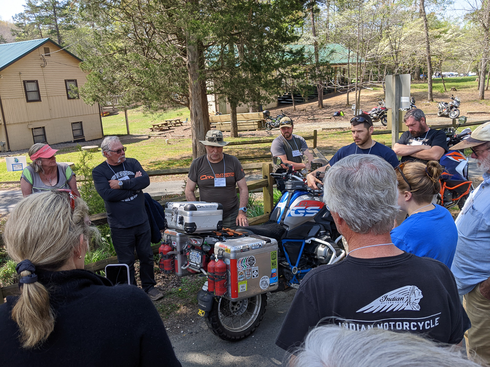 This event included presentations on traveling around the world, safety, planning, equipment, and the “Farkle Walk”, a one hour walk around as various owners described the accessories, additional, and modifications they made to their motorcycles. Some were humorous and some expensive. For example, one bike had a miniature beer keg in a coffee can with a camelbak straw for drinking.